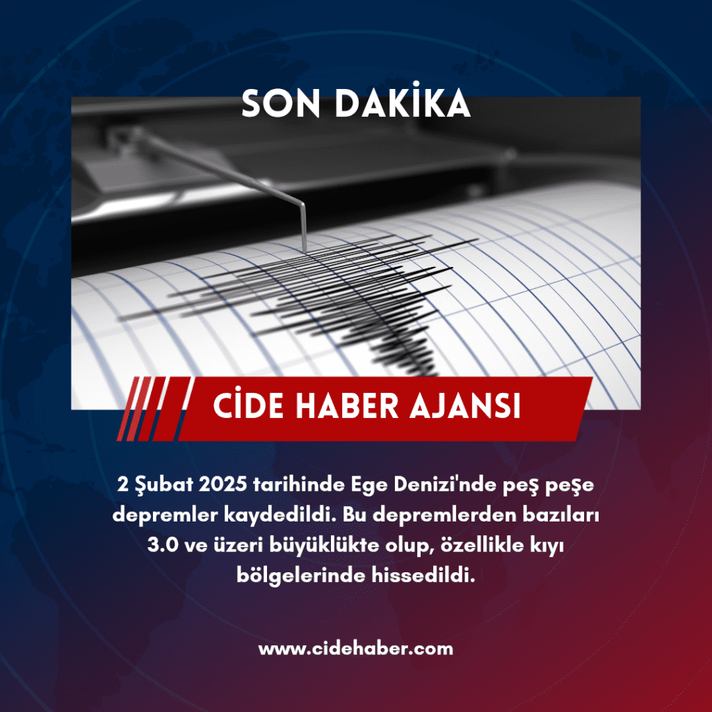 2 Şubat 2025 tarihinde Ege Denizi’nde peş peşe meydana gelen depremler dikkat çekti. Gün içinde yaşanan sarsıntılar arasında en büyüğü 4.8 büyüklüğünde gerçekleşti. Depremler özellikle kıyı bölgelerinde hissedildi.