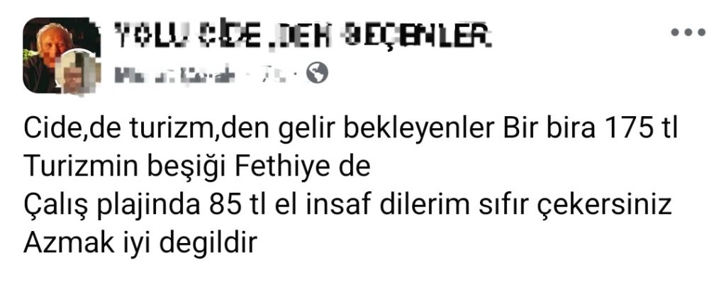 Cide’de tatil yapan birçok kişi, bu fiyatların benzer turizm merkezleriyle karşılaştırıldığında kabul edilemez olduğunu belirtiyor. Örneğin Türkiye’nin en yoğun turizm destinasyonlarından biri olan Fethiye Çalış Plajı’nda aynı ürün 85 TL seviyelerinde sunulurken, Cide’de bu rakamın iki katını aşması “orantısız ve ölçüsüz” olarak değerlendiriliyor.