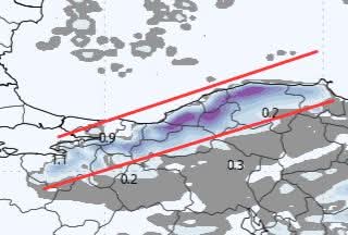 Özellikle kırmızı hat içerisinde kalan, haritalarda mor ve koyu gri renklerle gösterilen bölgelerde, 400–500 rakım üzerindeki yerlerde kar yağışının kuvvetli ve yer yer yoğun olacağı tahmin ediliyor.