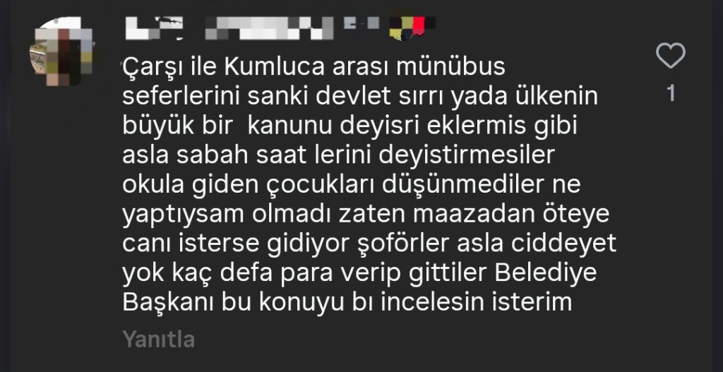 Çarşı–Kumluca Minibüs Saatleri Tepki Çekti
