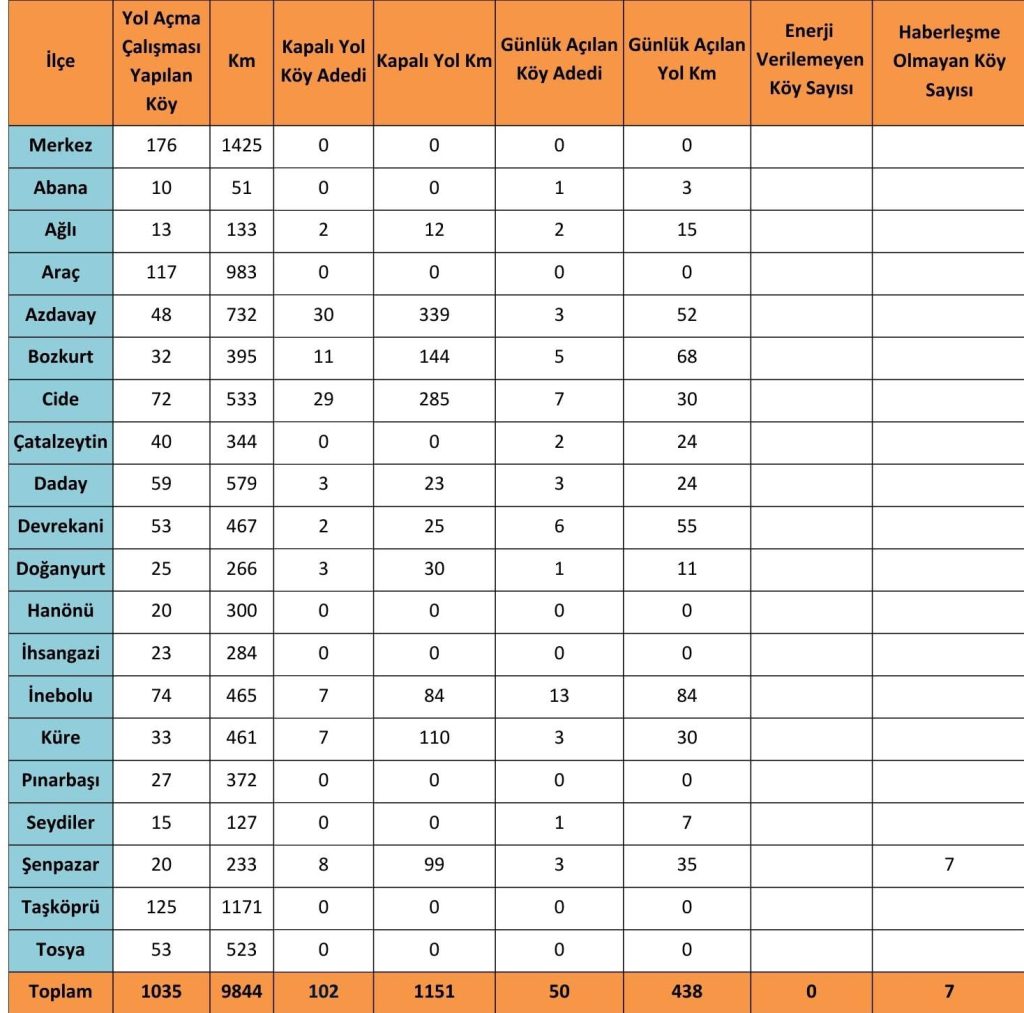 Son duruma göre Cide’de şu an 29 köy yolu ulaşıma kapalı bulunuyor.